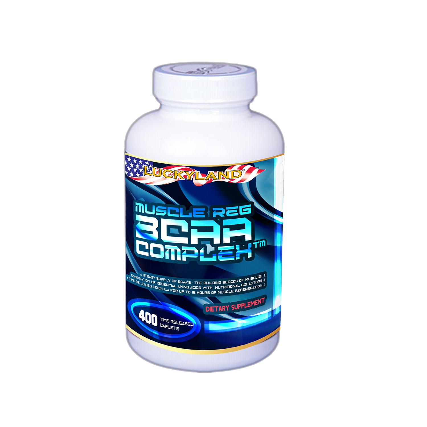 LuckyLand® MuscleReg BCAA Complex™ offers a time release formula that steadily supplies the body with free form Branched Chain Amino Acids (BCAA) for up to 12 hours. ✝