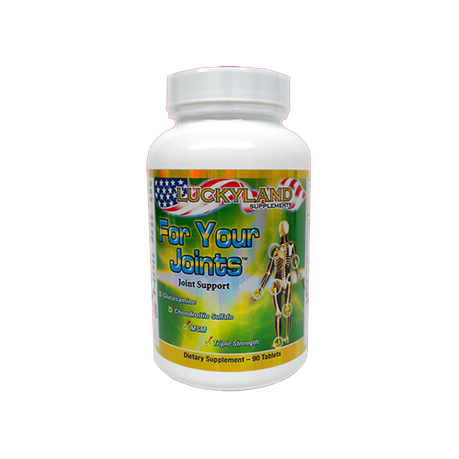 LuckyLand® For Your Joints™ is an advanced dietary supplement for individuals, who want to maintain healthy joints. It has triple strength of Glucosamine, Chondroitin, and Methylsulfonylmethane (MSM), combined with high potency vitamin C. ✝